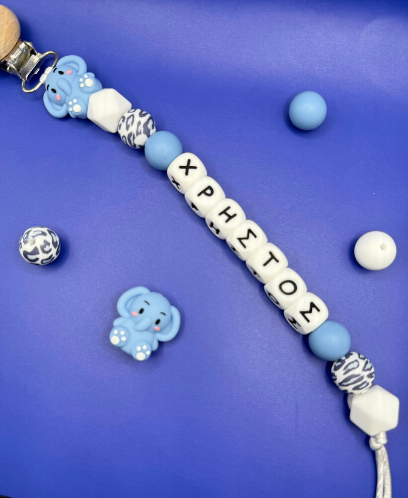 Χειροποίητο Κλιπ Πιπίλας ‘Little Elephant’ με Όνομα