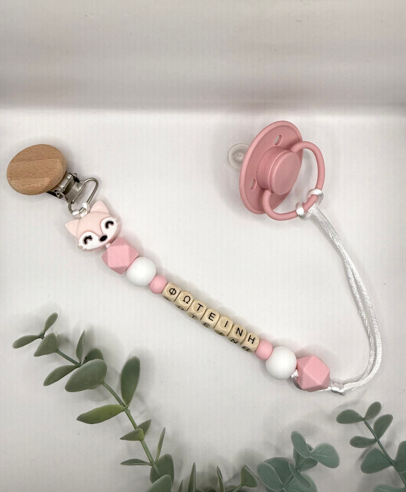 Χειροποίητο Κλιπ Πιπίλας ‘Little Fox’ Με Όνομα
