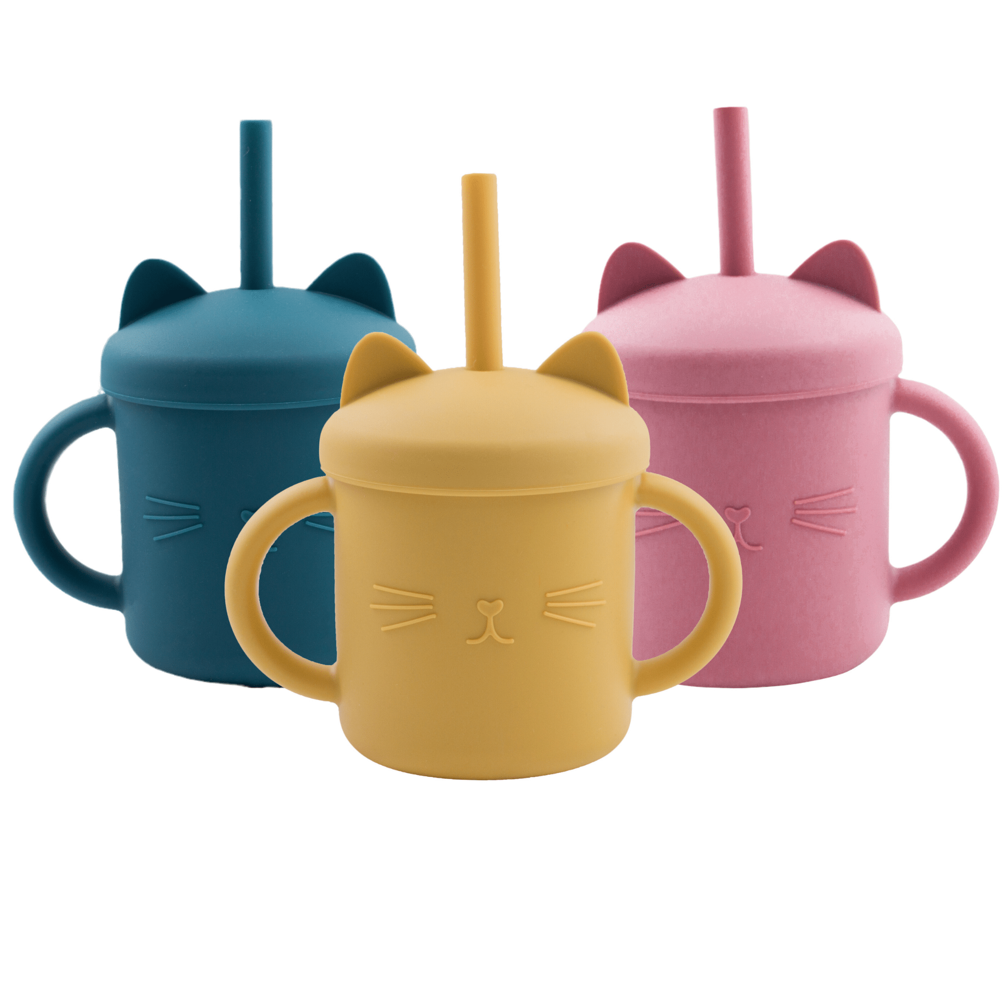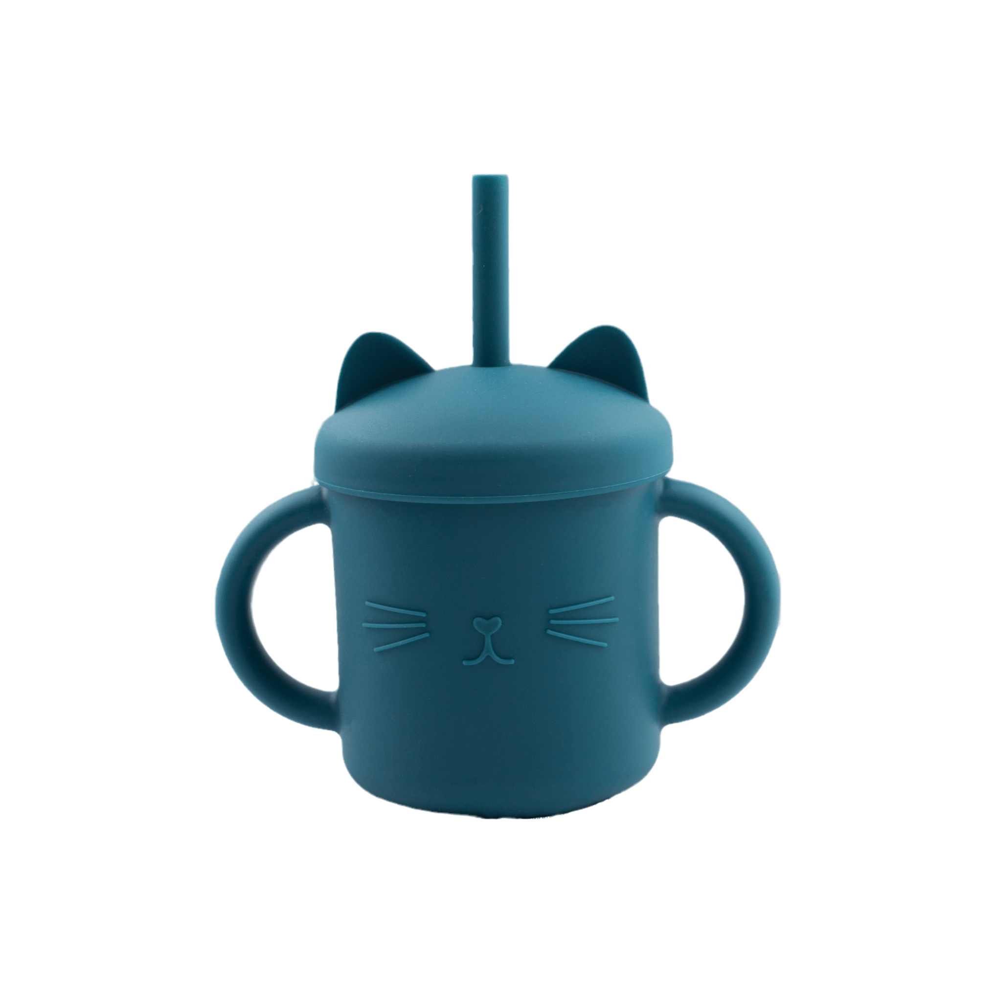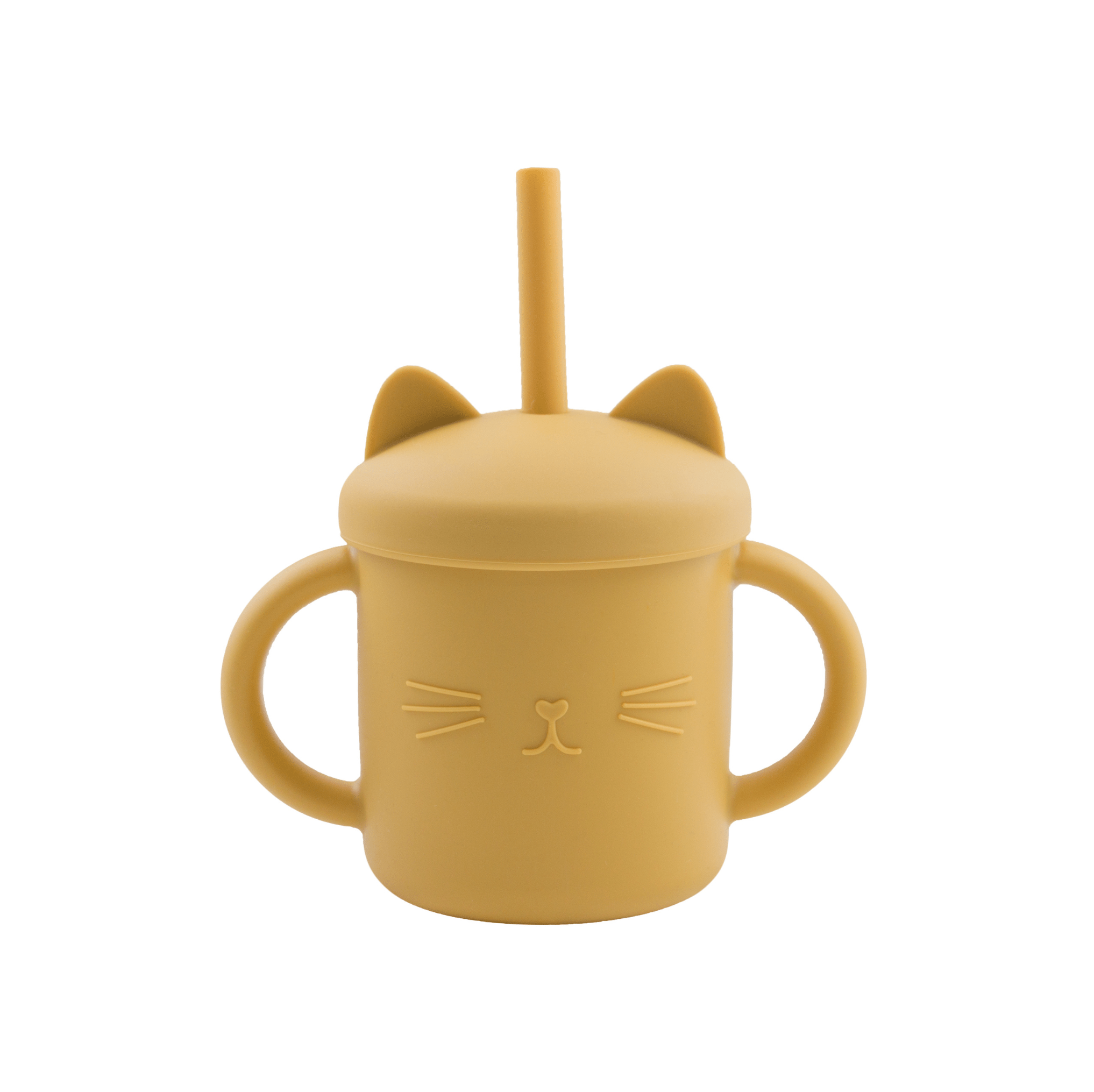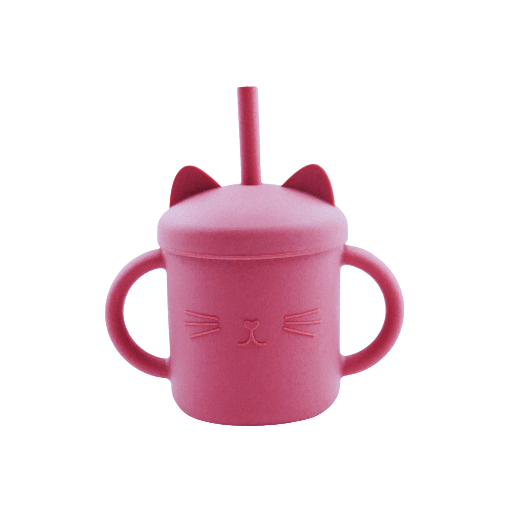 Εκπαιδευτικό Ποτηράκι Σιλικόνης με Χερουλάκια και Καλαμάκι ‘The Cute Cat’