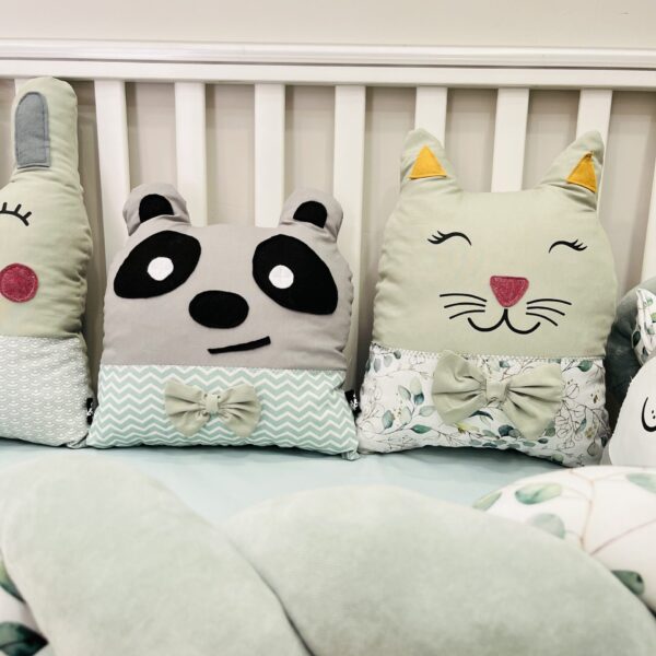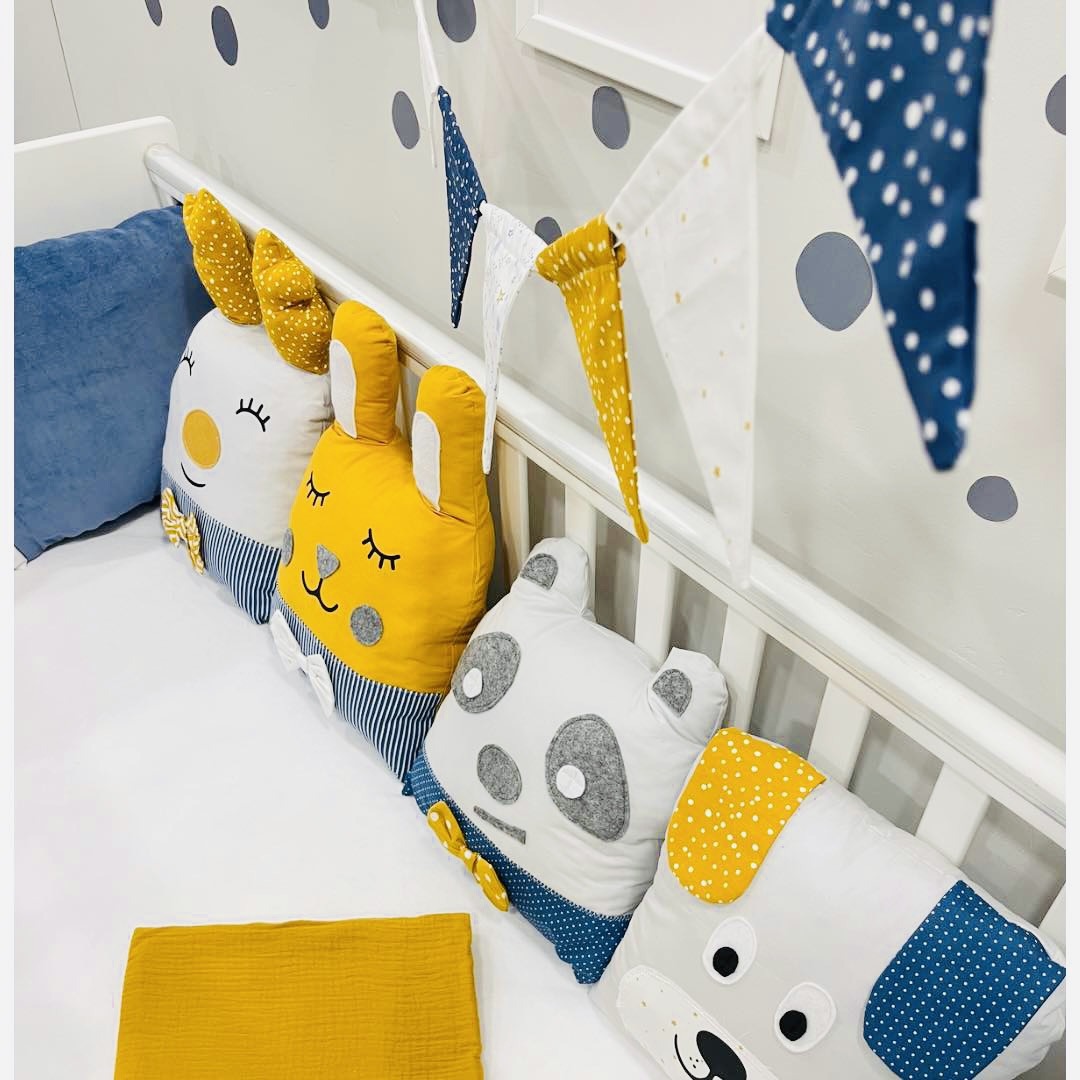 Ομορφύνετε την κούνια του μωρού σας και ενισχύστε την προστασία του με τις μοναδικές χειροποίητες πάντες – μαξιλαράκια σε μορφή διάφορων ζώων. Αναζητήστε και τα υπόλοιπα σχέδια. Δένονται με κορδονάκια στα κάγκελα της κούνιας ώστε να μην μετακινούνται τυχαία.