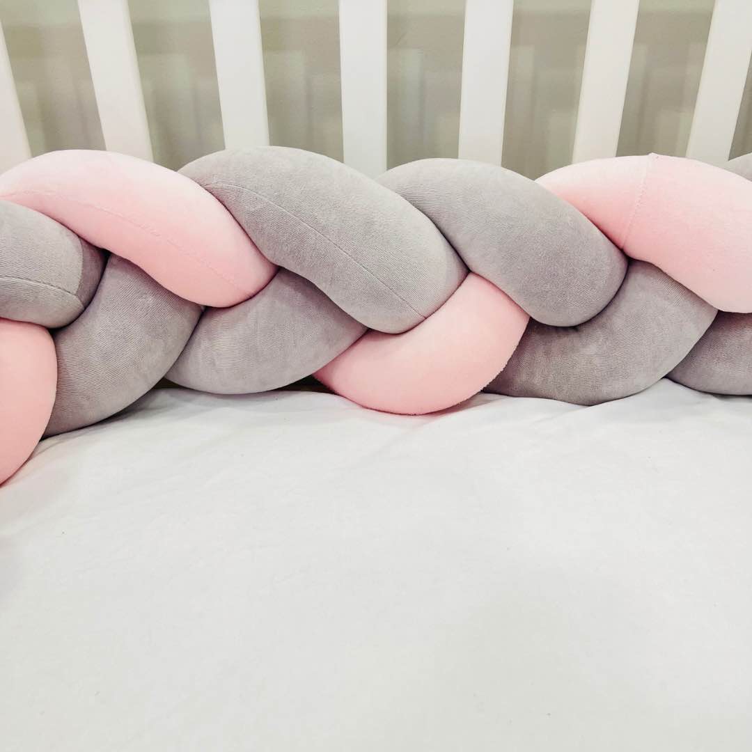 Χειροποίητη πάντα κούνιας πλεξούδα γκρι – ροζ για το κρεβατάκι του μωρού σας, απαλή σαν το χάδι της μαμάς, από υφάσματα υψηλής ποιότητας. Υπάρχει δυνατότητα ειδικών διαστάσεων και επιλογής χρωμάτων κατόπιν επικοινωνίας με το κατάστημα.