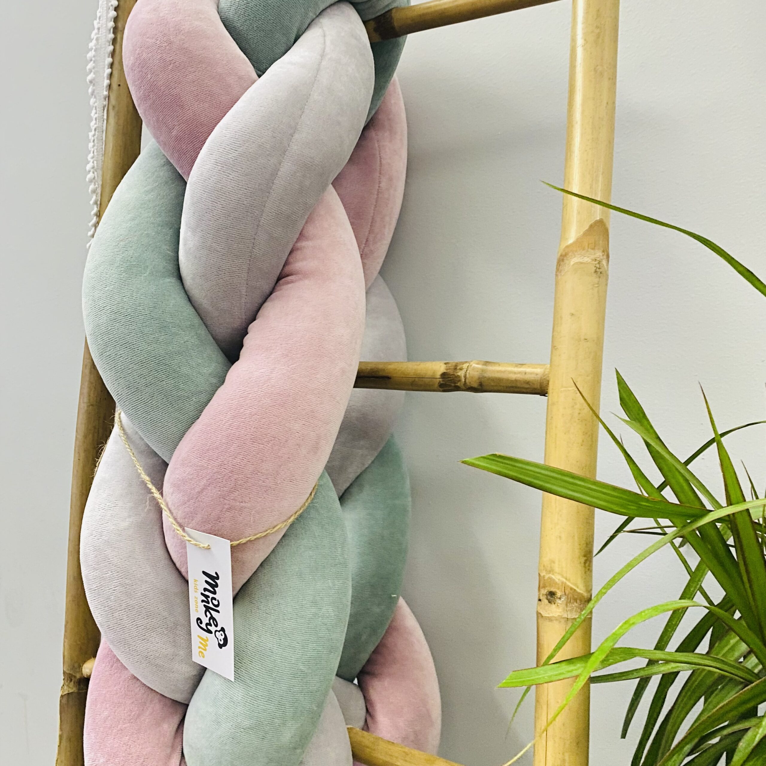 Πάντα Κούνιας Πλεξούδα Ροζ – Ευκάλυπτος – Γκρι