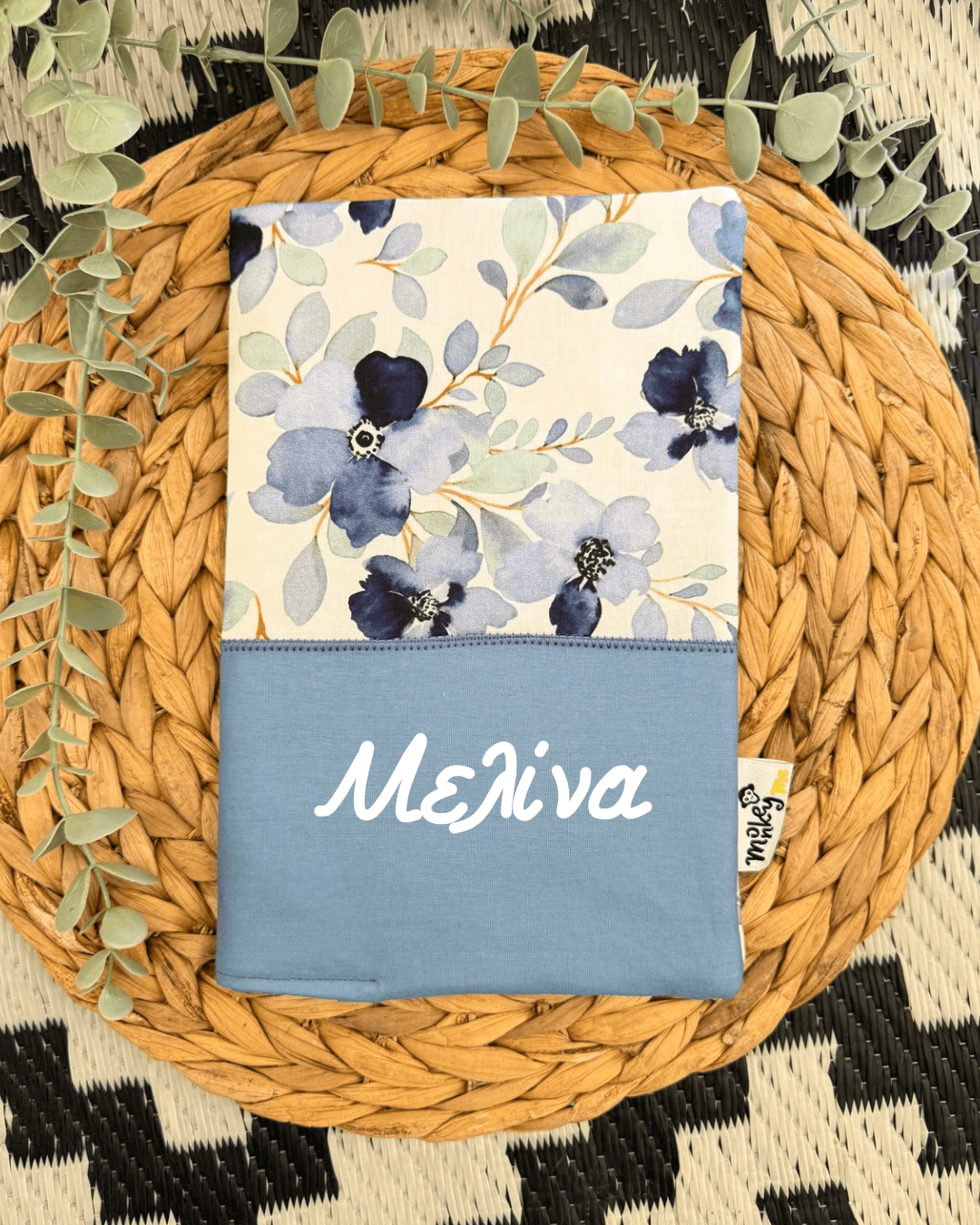Χειροποίητη προστατευτική θήκη με όνομα για το βιβλιάριο υγείας του παιδιού.