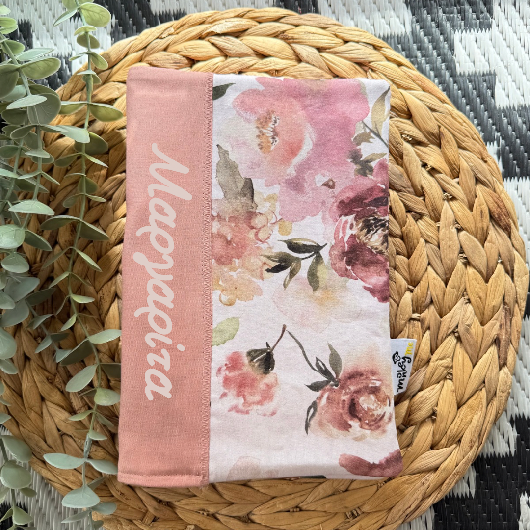 Χειροποίητη προστατευτική θήκη με όνομα για το βιβλιάριο υγείας του παιδιού.