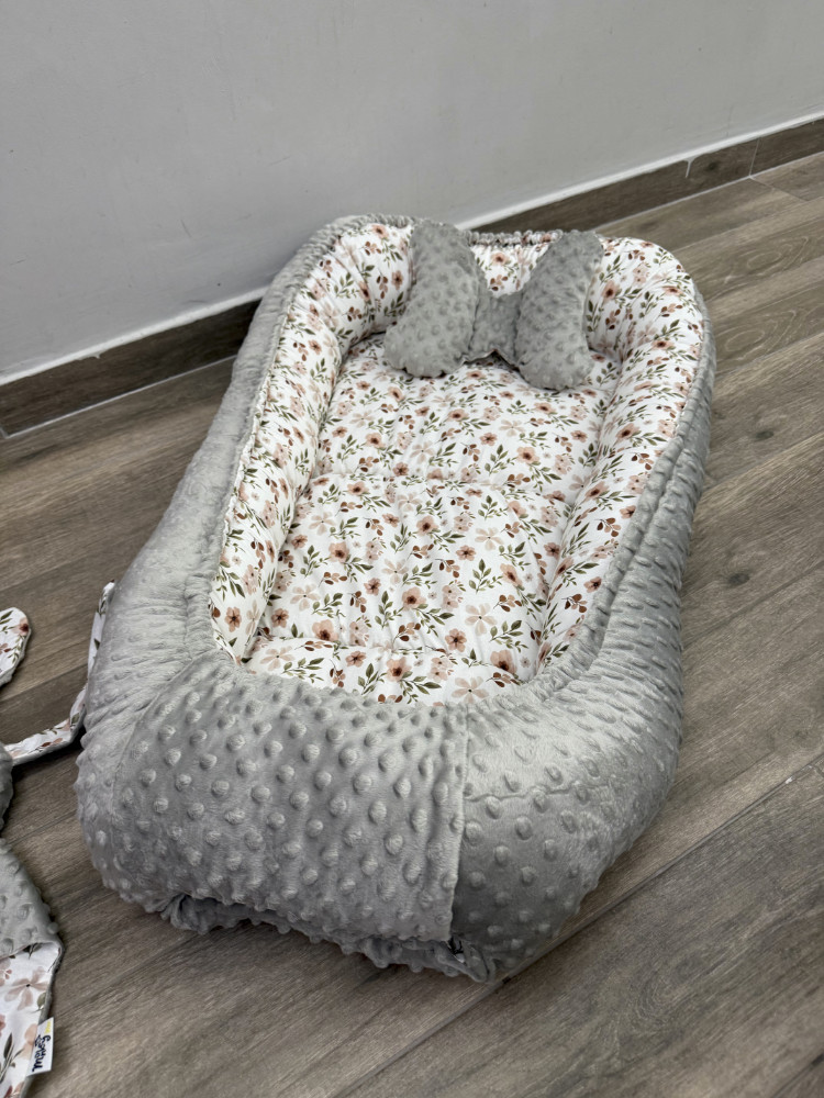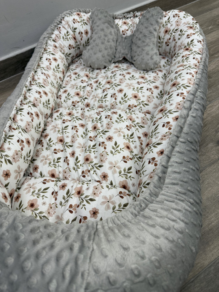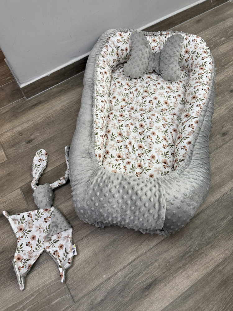 Βρεφική Φωλιά με Λουλουδάκια Grey Blossom