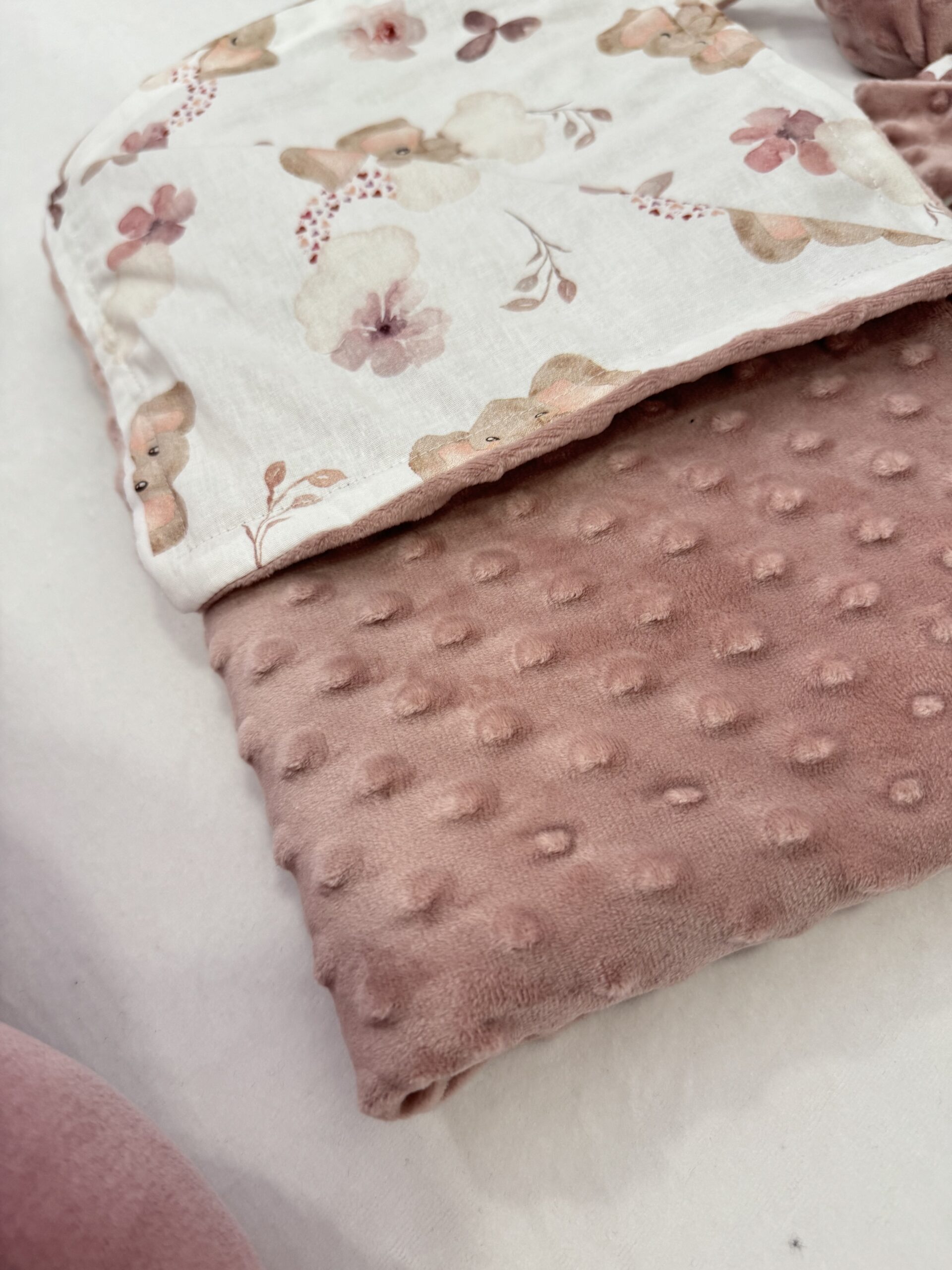 Χειροποίητη κουβέρτα αγκαλιάς διπλής όψης με minky βελούδινο ύφασμα από την μια μεριά και βαμβακερό από την άλλη μεριά.